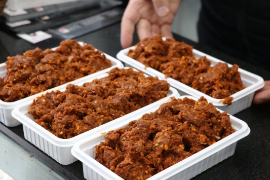 "İçinde kimyon, toz biber, farklı baharatlar, tuz ve sarımsak yer alır. Makine değmeden doğal bir şekilde elle yapılır. Bir saat elle yoğurulur, etin rengi değişir. Dinlendikten sonra 4-5 gün içerisinde tüketilmesi gerekir. Tat olarak eski Kayseri sucuğuna benzer. Ana yemek özelliğine sahip değildir hafif bir yiyecektir. Ramazanın ilk günlerinde talep fazla özellikle kargo ile satışlarımızda yoğunluk var."
