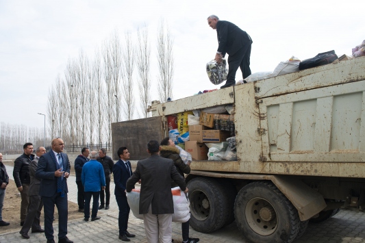 Vatandaşların büyük destek verdiği kampanyada toplanan bir kamyon giyim, gıda ve çeşitli yaşam malzemesi depremzedelere ulaştırılmak üzere Iğdır Afet ve Acil Durum Müdürlüğü yetkilerine teslim edildi.
