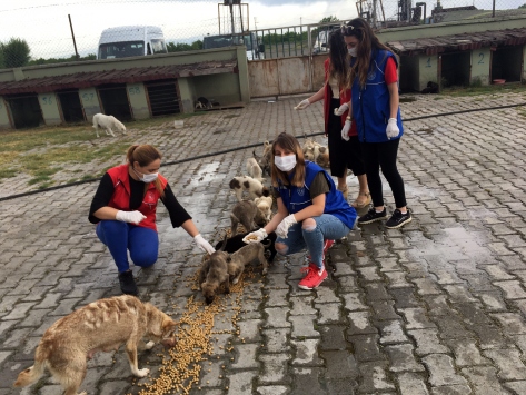 Gençlik ve Spor Bakanlığına bağlı Gençlik Merkezi üyesi gençler, yeni tip koronavirüs (Kovid-19) salgını nedeniyle yiyecek bulmakta zorlanan sokak ve barınaklardaki hayvanlara düzenli mama desteğinde bulunuyor.