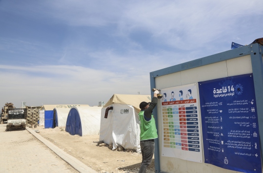 AA muhabirine konuşan İHH Kilis Basın birimi sorumlusu Yakup Alaca, "Kamplarda, Kovid-19 salgını hakkında bilgilendirme afişleri ve çalışmalarını yürütmeye devam ediyoruz." dedi.