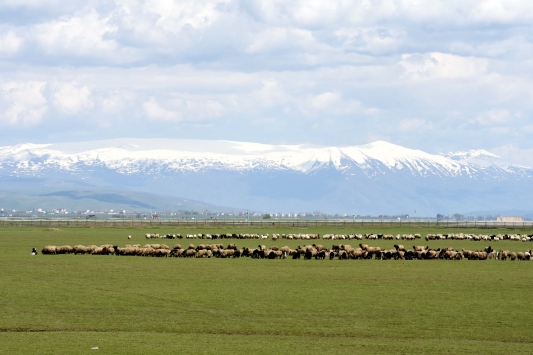 Türkiye'nin en büyük ovalarından biri olan Muş Ovası, beyaz örtünün kalkmasını fırsat bilen besicilerin hayvanlarını otlamaya çıkarmasıyla şenlendi. Çok sayıda bitki türünün bulunduğu ovada koyun ve kuzuların otlaması renkli görüntüler oluşturdu.