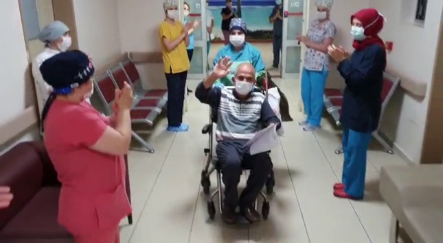Turunçcu, sağlık çalışanlarının alkışları arasında hastaneden ayrıldı.