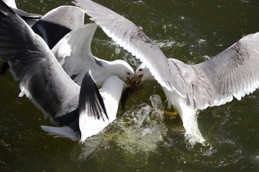 Erciş ilçesindeki Deli Çay'ın bulunduğu alanda oluşturulan balık bendine gelen eden çok sayıda kişi, binlerce inci kefalinin yolculuğuna tanıklık ediyor.