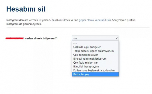 Instagram hesabınızı kalıcı olarak kapatmak için linke tıklayın