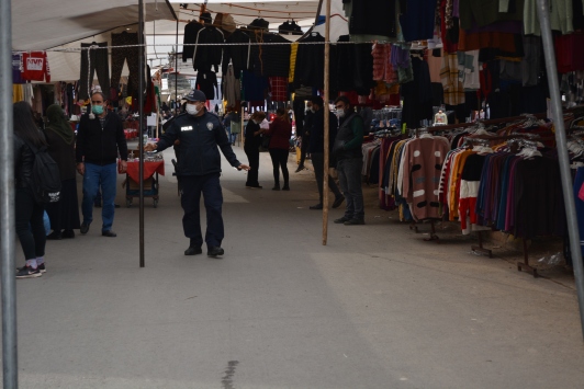Pazar yerinde vatandaşların genel olarak kurallara uyduğu, yoğunluğun görülmediği gözlendi.