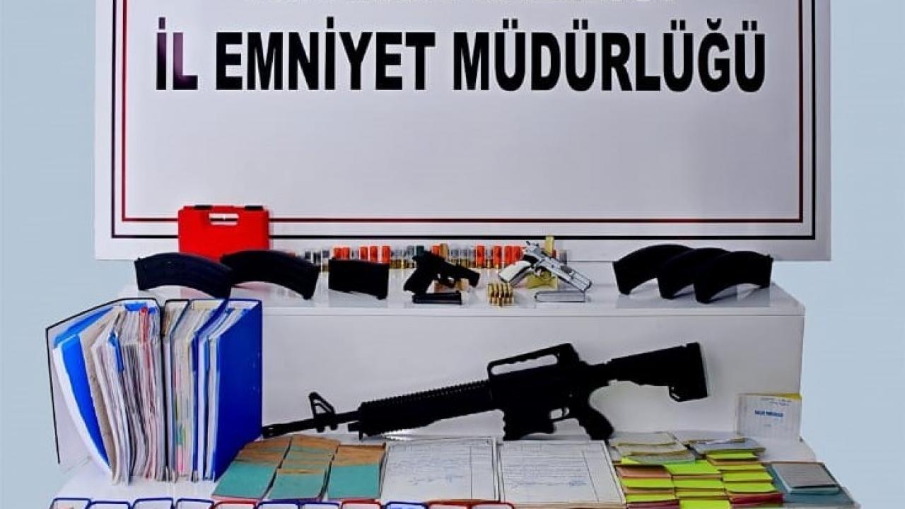 Yapılan çalışmalar ve aramalar neticesinde; çok sayıda dosya, ajanda, klasör, yazışma evrakları ve benzeri evrak, 1 adet gaz tabancası ve şarjörü, 1 adet ruhsatsız 9 milimetre 14’lü tabanca ve şarjörü, 51 adet 9 milimetre fişek, 1 adet tam otomatik ruhsatsız av tüfeği ve bu tüfeğe ait 6 adet şarjör, 30 adet av tüfeği fişeği ele geçirildi. Ele geçen suç unsuru malzemelere el konularak, konu ile ilgili F.K., M.K., Ö.Ç., A.Ç., Ü.K., S.D., C.K. isimli 7 şüpheli şahsa işlem yapılırken, 5 şüpheli şahıs gözaltına alındı.