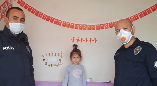 İsteği kabul eden ekipler, eve giderek Defne'ye sürpriz yaptı. Kutlamaya eşlik eden polis ekipleri, hatıra fotoğrafı çekerek evden ayrıldı.
