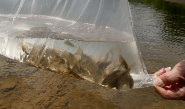 Karaca, "Eş zamanlı olarak 5 ilçemizdeki 12 göletimize toplamda 60 bin yavru sazan bıraktık." ifadelerini kullandı.