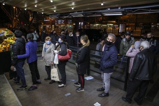 Gece saat 24.00'te başlayıp, Pazar akşamı saat 24.00'te sona erecek olan ve aralarında İstanbul'un da bulunduğu büyükşehir statüsündeki 30 ili kapsayan sokağa çıkma yasağı, vatandaşların market ve fırınların önünde uzun kuyruklar oluşturmasına neden oldu.