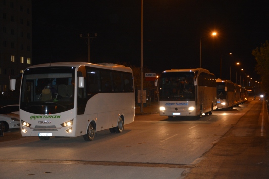Sağlık kontrollerinin ardından bu kişiler, sosyal mesafe kuralı da dikkate alınarak otobüslere bindirildi.