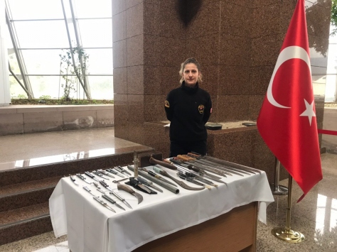 Sergide 1 suikast silahı olarak tanımlanan tabanca, 7 pala, 25 özel bıçak, 1 metal boru, 1 tahta balyoz, 2 orak, 134 makas, 9 keski, 32 falçata, 2 çok amaçlı bıçak, 35 kart bıçak, 4 şiş tornavida, 150 neşter, 193 bıçak, 75 törpü, 6 biber gazı, 2 muşta, 15 kurşun ile kesici ve delici olabilecek çeşitli nitelikteki aletler bulunuyor.