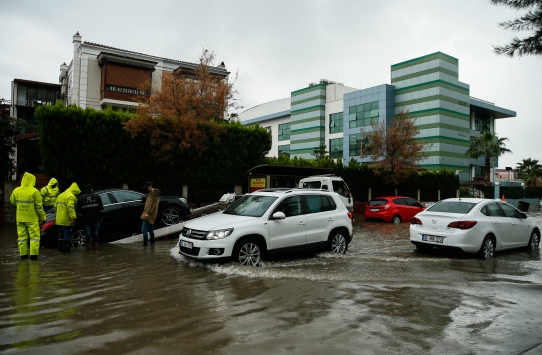 İzmir'de etkili olan sağanak nedeniyle bazı araçlar suda kaldı. Yağışın devam ettiği Karşıyaka ilçesinde su tahliye çalışması devam ediyor.