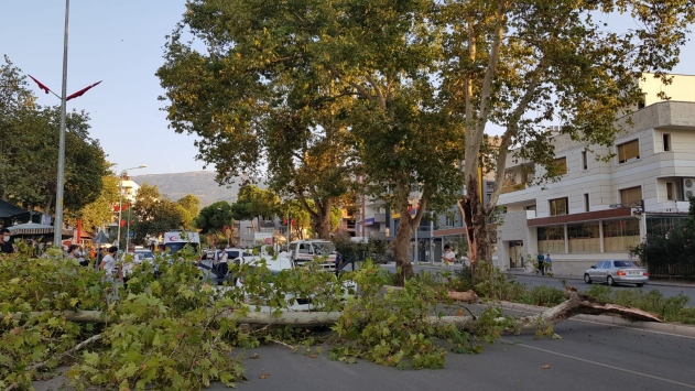 Devrilen ağaç belediye ekiplerinin çalışması sonucu kaldırılırken, bir süre trafiğe kapalı kalan yol tekrar açıldı.
