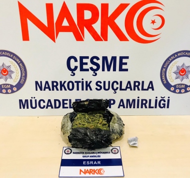 Şüphelilerin bir otelde kayıt yaptırmadan konakladığını belirleyen ekipler, otel odasında yaptıkları aramada, 525 gram esrar buldu.