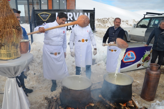 Ziyaretçi Ökkeş Payam ise etkinlikten memnun olduğunu belirterek dondurmayla beraber kar üzerine dökülen tatlı şurupla yapılan, karsambaç tatlısından da yediğini söyledi.