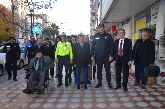 Samsun İlçe Emniyet Müdürü Süleyman Gökay Gökdoğan ve Bafra Görme Engelliler Derneği üyeleri, Atatürk Bulvarı'ndaki esnafları ziyaret ederek sarı çizgiler konusunda bilgilendirme yaptı.