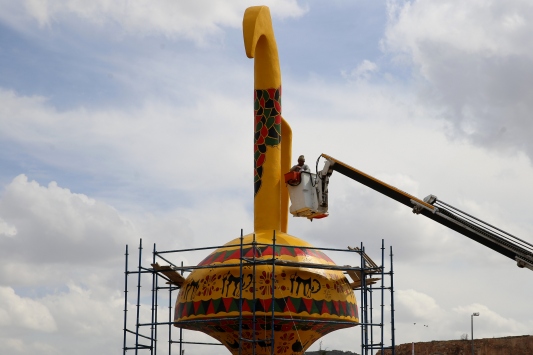 Türkiye'nin önemli turizm bölgelerinden Kapadokya'nın merkezi konumundaki Nevşehir'de bulunan 14 metrelik dev testi, Anadolu'da yaşayan medeniyetleri temsil eden figürlerle süslenerek restore ediliyor.