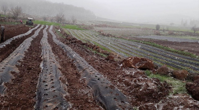 Rakımı yüksek olan mahalleye, nisanda da kar yağdığını dile getiren Karakoca, kar yağışı altında çilek ekimini yaptıklarını söyledi.
