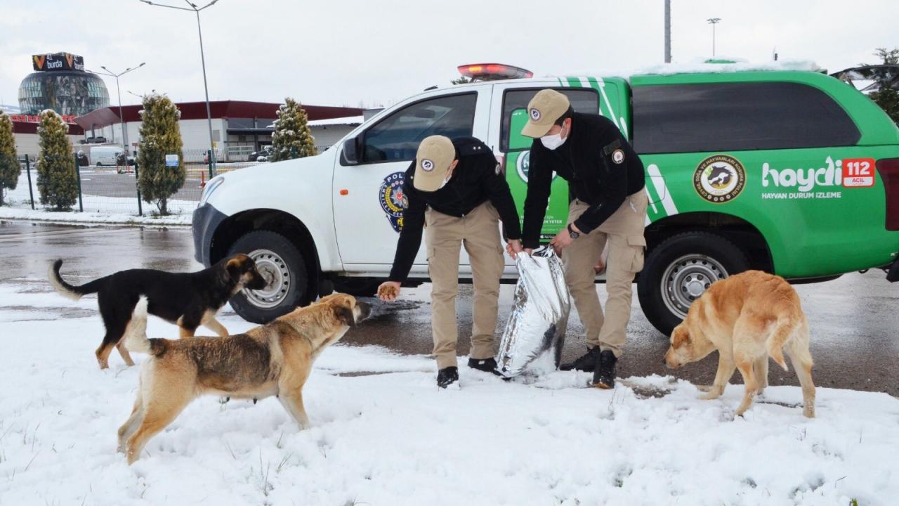 İl Emniyet Müdürlüğü Çevre, Doğa ve Hayvanları Koruma Büro Amirliği ekipleri de kar nedeniyle yiyecek bulmakta zorlanan sokak hayvanları için belirli noktalara mama bıraktı.
