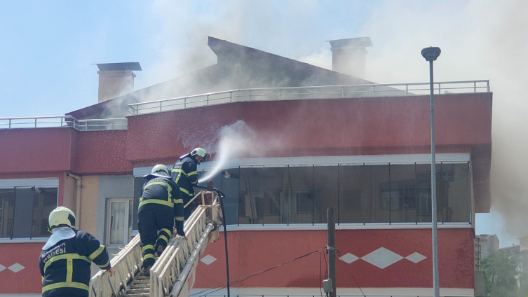 100. Yıl Mahallesi 1009. Cadde'deki 5 katlı bir apartmanın R.T'ye ait çatı katında henüz belirlenemeyen nedenle yangın çıktı.