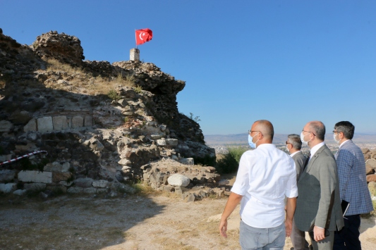 Kazı Başkanı Yılmazyaşar'dan Karacahisar Kalesi hakkında brifing alan Rektör Erdal, Türk tarihi bakımından önemli olan ve Osmanlı Beyliğinin kurulduğu kaleyi ziyaret etmekten mutluluk duyduğunu belirtti.