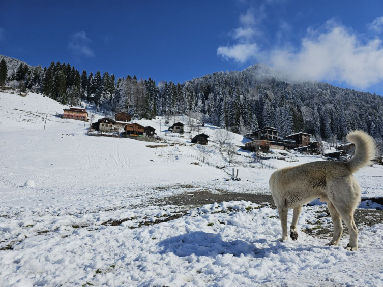 Trabzon'un Tonya ilçesinin yüksek kesimleri de ilkbaharda yağan karla kaplandı.