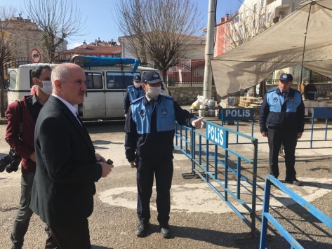 Semt pazarının giriş ve çıkış noktasında yürütülen denetimleri yerinde inceleyen Vali Meral, pazar yerinde görevli polis ve zabıta ekiplerine verdiği talimatlarla alınan tedbirlerin uygulanması hususunda gerekli titizliğin ve hassasiyetin gösterilmesini istedi.
