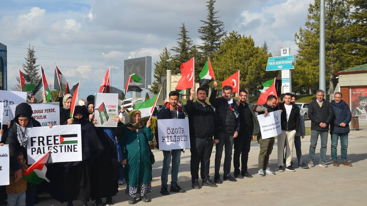 Grup adına açıklama yapan Kezban Gültekin, Gazze'de insanlığın dünyanın gözleri önünde katledildiğini söyledi.