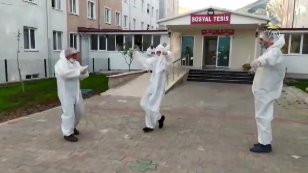 KYK Gülsüm Ana Öğrenci yurdundaki 3 personel, karantinadakilere moral vermek için kente has oyun havası Tokat sarması oynadı.