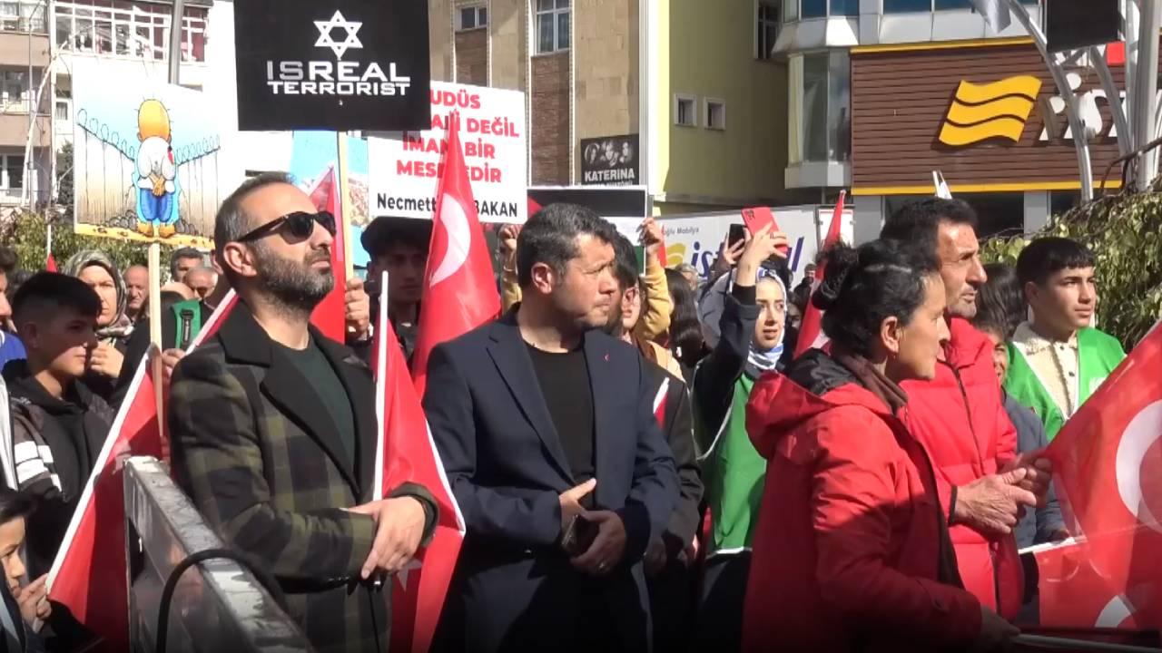 Sarıkamış ilçesinde de vatandaşlar, STK'ler öncülüğünde ellerinde Türk ve Filistin bayraklarıyla yürüyüş yaptı.
