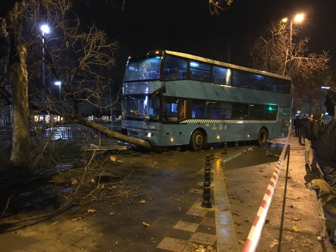 Durakta bekleyen 3 kişiye çarpan ve ilerlemeye devam eden otobüs, ardından kaldırım üzerindeki ağaca çarparak durabildi.