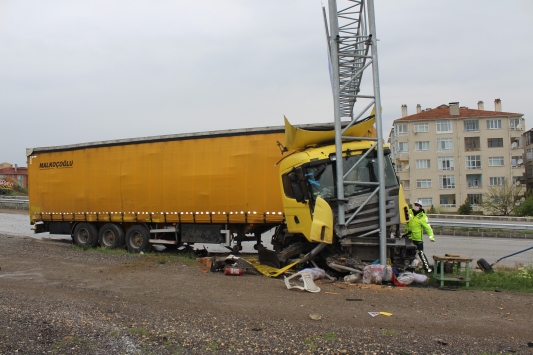 Kastamonu'da Mustafa Ekiz yönetimindeki 55 K 3478 plakalı tır, D-100 kara yolunun Tosya ilçesi sınırlarında kalan Samsun Kavşağı'nda önce yol kenarındaki bariyerlere, daha sonra trafik levhasının direğine çarptı.