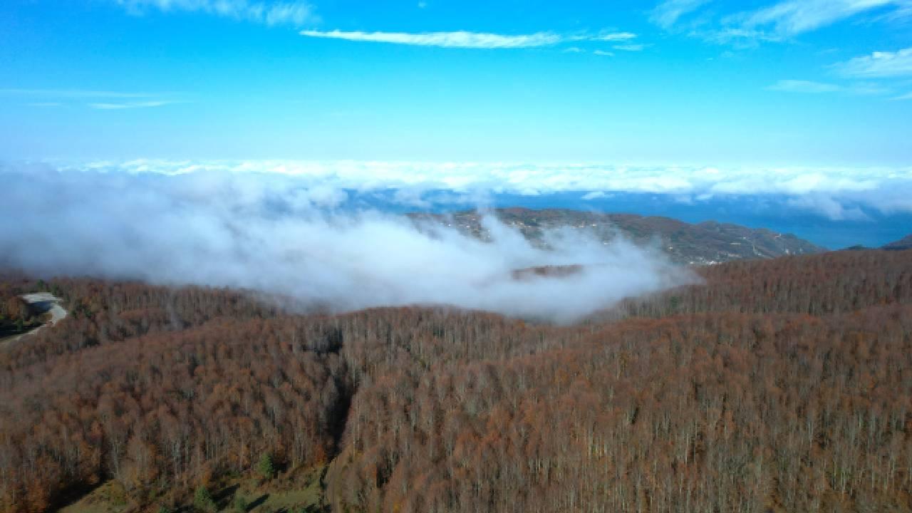 Vadilere çöken sis, ormanlık alanlarla buluşunca doğada güzel görüntüler oluşturdu.
