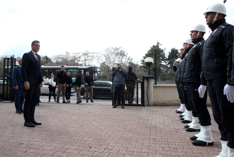 İl Emniyet Müdürlüğü önünde müdür yardımcıları ve şube müdürleri tarafından karşılanan Aydın, polis mangasını selamladı.