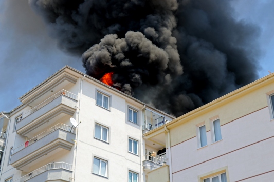 Alınan bilgiye göre, merkez Kocasinan ilçesi Hoca Ahmet Yesevi Caddesi Basmacı Sokak'taki 6 katlı binanın çatısında tadilat ve yalıtım yapıldığı sırada pürmüzle ısıtılan malzeme tutuştu.
