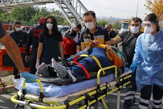 Sevim H, ambulansla Erciyes Üniversitesi Tıp Fakültesi Gevher Nesibe Hastanesine kaldırıldı.