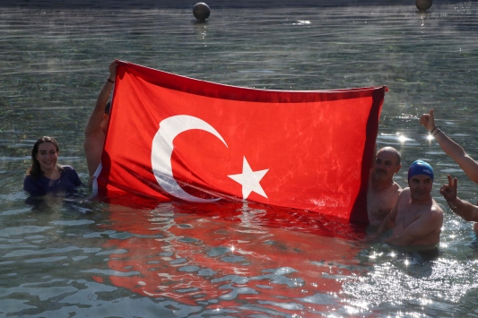 Yarışmada birinci olan Yasin Tuna Başpınar, yüzerken zorlanmadığını, suyun sıcak olduğunu, birinciliğini Elazığ ve Malatya'daki depremzedelere adadığını ifade etti.