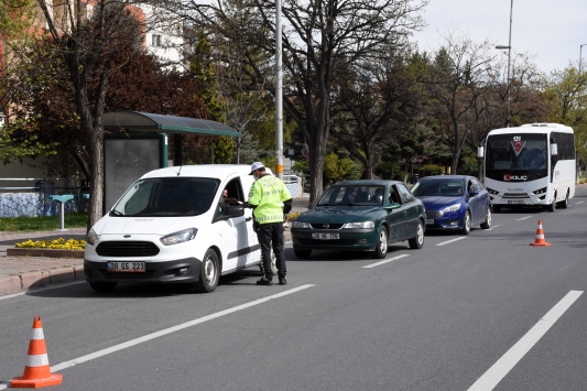 Cumhuriyet Meydanı, Sivas Caddesi, Talas, İnönü, Kocasinan, Erciyes ve Mustafa Kemal Paşa bulvarlarında araçları durduran ekipler, geçerli belge ve izin kontrolü yaptı.