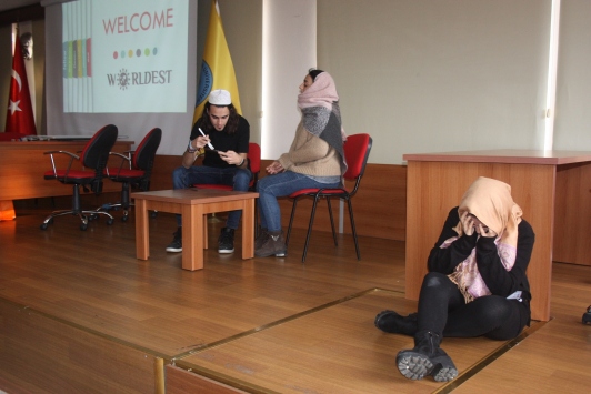 Trakya Üniversitesi Keşan Yusuf Çapraz Uygulamalı Bilimler Yüksekokulu'nda, "Humanisation" projesini kapsamında sahnelenen tiyatro oyununu, öğrenci ve akademisyenler izledi.
