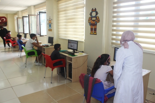 "Öğrencilerimiz canlı derslerini buradan takip ediyor. Tüm EBA destek noktalarımızda görevli öğretmenlerimiz bulunuyor. Öğrencilerimiz maske takarak sınıflara geliyor. Sınıflara girmeden dezenfektan kullanıyor. Her öğrencimiz için günlük 2 saat kullanma hakkı bulunuyor. Bilgisayarlar kullanıldıktan sonra dezenfekte ediliyor."