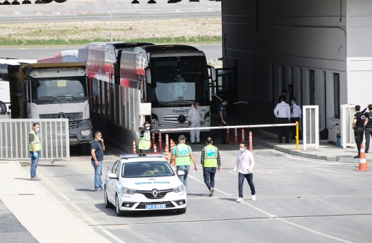Türkiye'ye gelen yolcular, sağlık ekiplerinin yaptığı rutin kontrolün ardından kendilerini bekleyen otobüslere bindirildi.