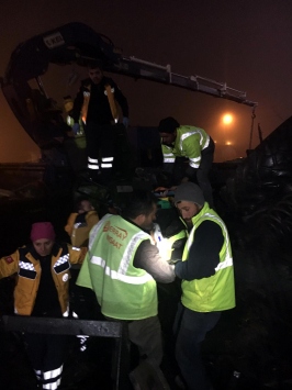 Çekicide sıkışan işçiler, Kırıkkale Belediyesi itfaiye ekiplerince çıkarıldı.