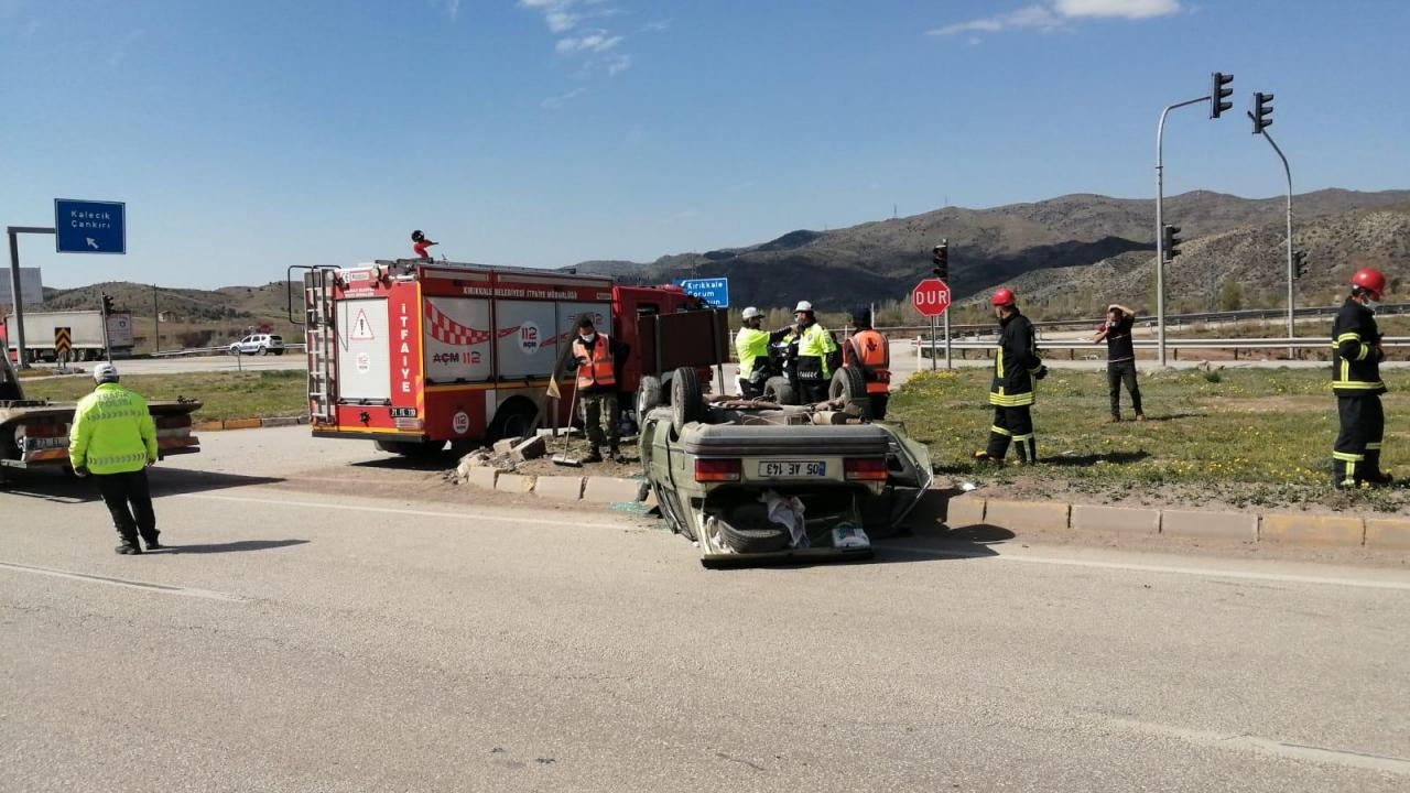Kırıkkale-Ankara kara yolu Kalecik Kavşağı yakınlarında araç, sürücüsünün direksiyon hakimiyetini kaybetmesi sonucu devrildi.