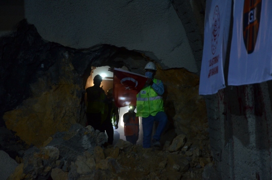 Tünelin açılmasıyla diğer tarafdan çıkan işçilerden biri, elindeki Türk bayrağını Vali Mustafa Çiftçi'ye teslim etti. Vali Çiftçi, bayrağı üç kere öpüp, alnına koydu.