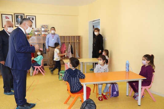 Vali Bilgin, eğitim veren okulları ziyaret ederek, yüz yüze eğitim gören öğrenci ve öğretmenler ile bir araya geldi.