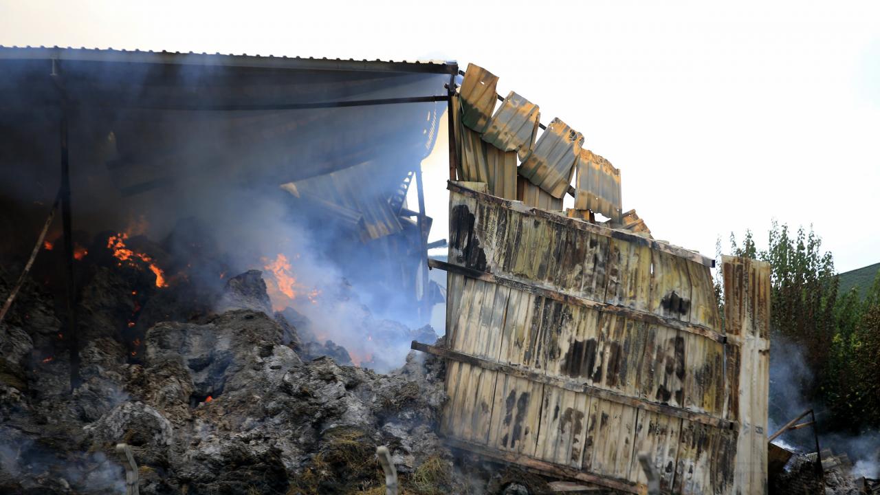 Yangın nedeniyle yaklaşık 5 bin metrekarelik deponun büyük bir bölümünde çökmeler meydana gelmiş, depoda saman balyası, yonca, kepek ve mısır gibi hayvan yemlerinin bulunduğu öğrenilmişti.