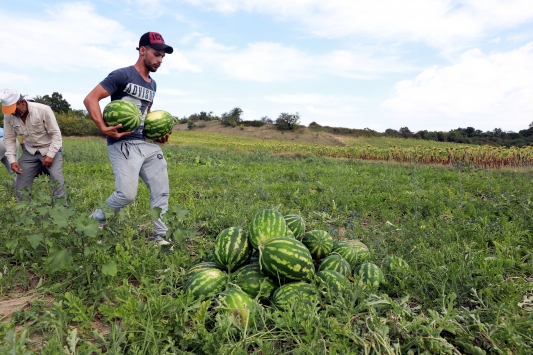 Toplanan karpuzlar kamyon ve traktörlere yüklenerek Edirne, Kırklareli ve Tekirdağ'da satışa sunuluyor.