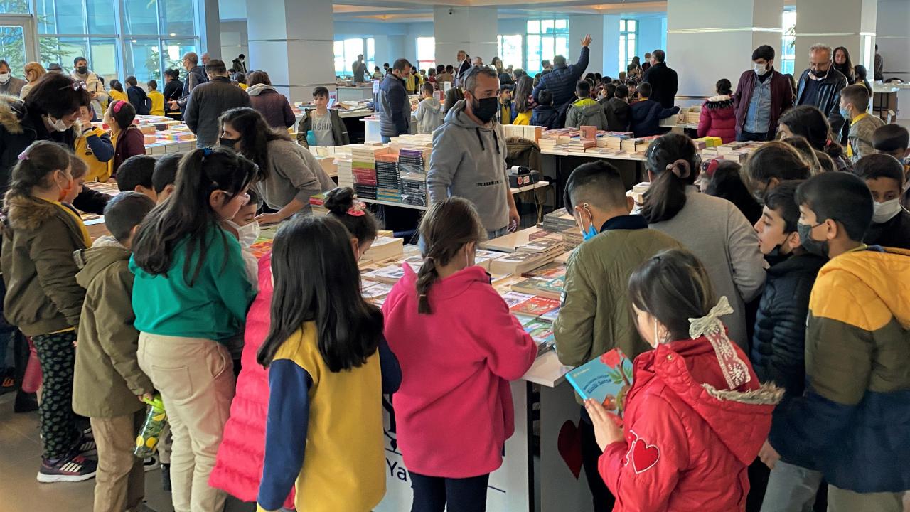 Söyleşi ve imza günlerinin de düzenleneceği fuarın açılışına katılan ilkokul öğrencilerine kitap hediye edildi.