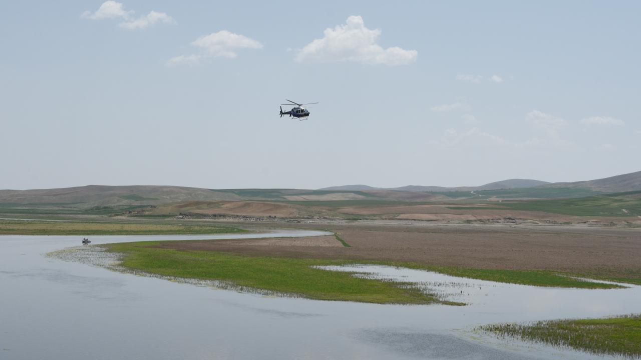 Kırşehir Valisi Hüdayar Mete Buhara, İl Emniyet Müdürlüğü Asayiş Şube Müdürü Celal Yurdakul ve teknik ekibin yer aldığı uçuşta, nehir ve göl yüzeyi ile Kortulu, Toklumen, Savcılı Büyükoba ve Hirfanlı köylerinin sahil kısımları tarandı.