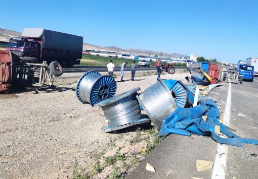 Çarpışmanın etkisiyle savrulan tır, buğday ekili tarlaya devrildi. Tırdaki elektrik kablolarının saçıldığı kara yolu bir süre trafiğe kapandı.